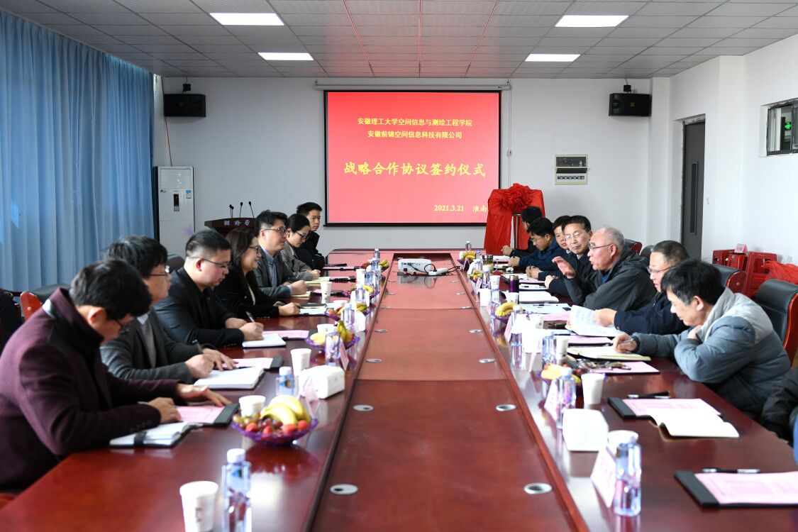3月21日下午,永利集团3044官网欢迎您与安徽前锦空间信息科技有限公司战略合作协议签约仪式在求本楼北503会议室隆重举行。副校长郑明东出席会议并讲话,学院领导、老师代表参加会议。签约仪式由学院党委书记吴军主持。