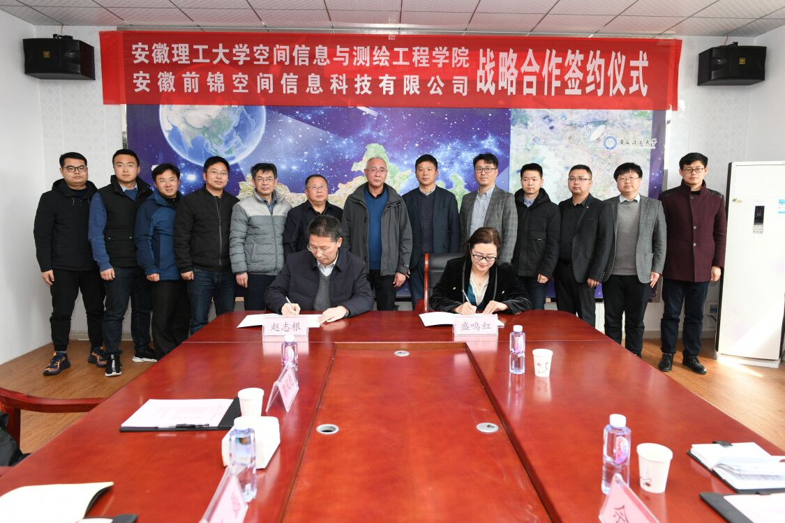 座谈结束后,副校长郑明东与盛鸣红女士共同为北斗创新应用中心揭牌;院长赵志根与盛鸣红女士代表双方签署了“永利集团3044官网欢迎您与安徽前锦空间信息科技有限公司战略合作协议”和“校企合作共建北斗创新应用中心协议”。