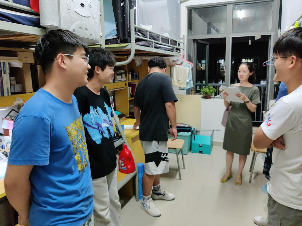 又值一年金秋开学季,按照学校2021年秋季学期开学返校工作安排,9月1日至3日,永利集团3044官网欢迎您本科生、研究生陆续返校,为进一步了解学生返校后状态,激励同学们以更积极的精神面貌投入到校园学习和生活中,9月3日晚,学院党委副书记孟静及各年级辅导员深入学生宿舍,实地了解学生返校后的学习生活情况,为学生送去关心和问候。