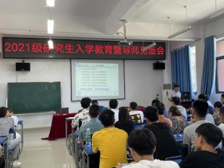 院长余学祥教授对2021级研究生的到来表示热烈欢迎,详细介绍了学院学科发展历史、科研平台等情况,重点围绕“研究生和导师的八件事”,“初涉科研的四个黄金戒律”等方面帮助同学们尽快转变角色,快速融入到学习和科学研究中来。同时,要求研究生要具有家国情怀、科学家精神、创新精神,树立崇高的理想,深刻理解新时代青年的历史使命。