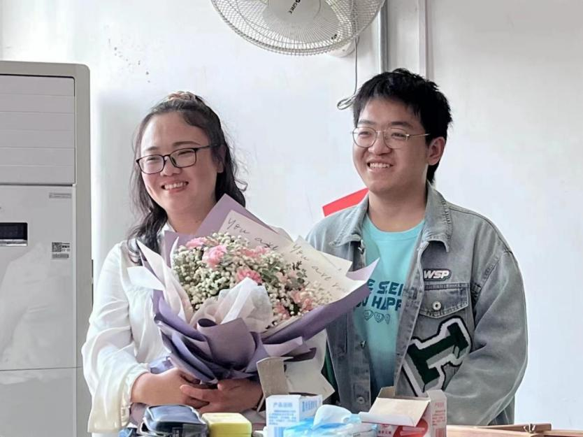在课堂上,学生们手捧着鲜花,怀揣着兴奋与感激,向女教师们送以鲜花和祝福。窗外的微风,将鲜花的清香吹到教室、办公室的每个角落,也吹进在场每个人的心中。收到鲜花的老师们感到惊喜,微笑着与学生们合影,老师们的脸上都洋溢着幸福的笑容。她们手上有花,肩上有责,心中有梦。