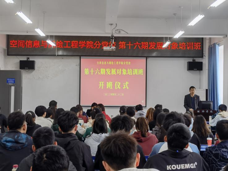 4月22日上午,永利集团3044官网欢迎您在北512报告厅举行学院分党校第十六期发展对象培训班开班典礼。学院党委书记范洪喜、党委副书记孟静、培训班班主任、辅导员和发展对象70余人参加了开班典礼。
