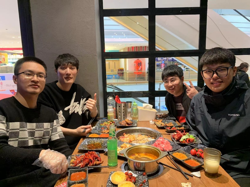 四位男生虽然来自不同地方,但志趣相投,结下深厚友谊。在四人决定要一起考研后,伴着那些阳光明媚的日子,总会看见这样四个身影,他们早上一同前往图书馆开启一天元气满满的学习生活。晚上一起回寝后,大家互相督促相互帮助,会将白天遇到的难题毫无保留地倾诉出来,一起讨论,誓要把题搞懂吃透。每当有人搜罗到好的学习方法或课程时,总是第一时间分享。睡觉前,会有意无意抽背单词,“这个单词是什么意思?”“那个同义词有哪些?”。