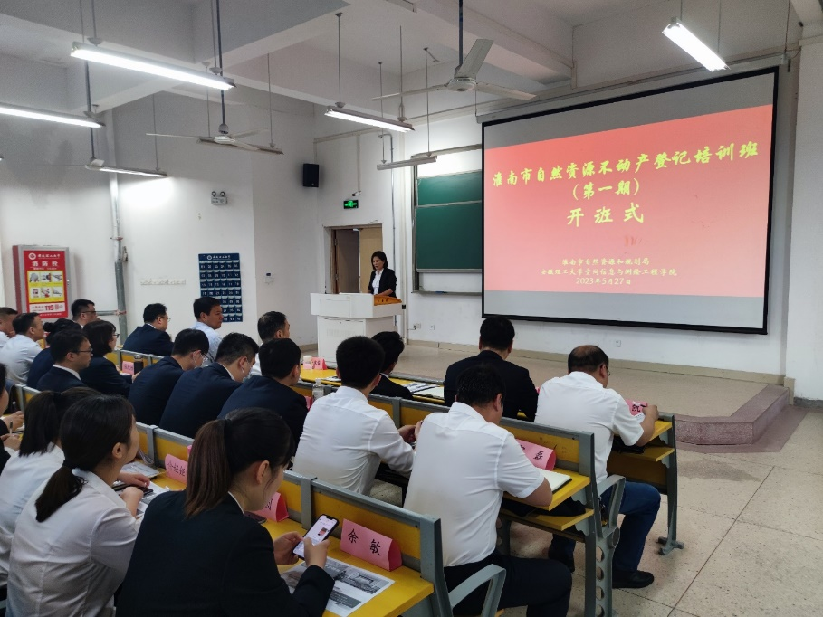 5月27日-28日,淮南市自然资源不动产登记培训班(第一期)在我校天工楼204教室举行。淮南市不动产登记中心主任姜文俊,永利集团3044官网欢迎您党委书记范洪喜,以及来自淮南市不动产登记中心、凤台县不动产登记和交易中心、寿县自然资源确权登记中心、毛集实验区不动产登记中心的100名人员参加了开班仪式。开班仪式由学院副院长赵兴旺主持。