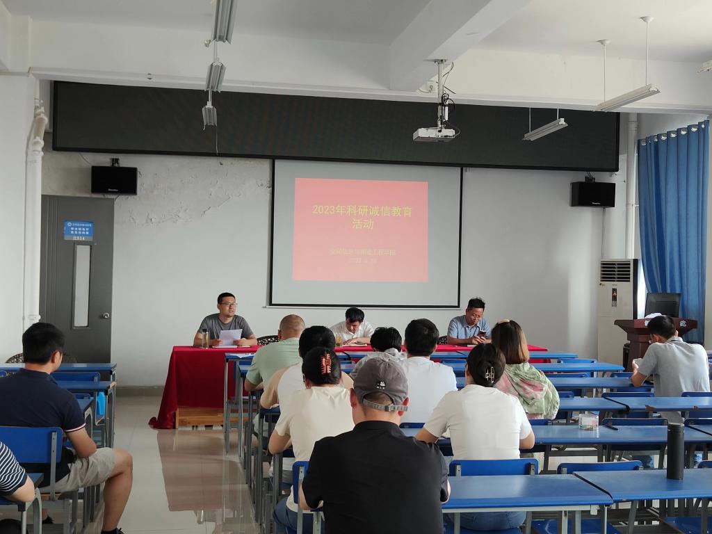 6月15日上午在学院北512会议室开展2023年科研诚信教育活动,参会人员主要包括全院教师、研究生代表等,赵兴旺领学了《永利集团3044官网欢迎您科研诚信管理办法(试行)》、《国家自然科学基金项目评审请托行为禁止清单》等文件,通报了近年来的多起学术不端行为案例处理决定,强调科研诚信的重要性。随后师生一起观看了学术不端警示教育片“‘抄人’现形记”,视频展现了科研失信行为给科研工作带来的危害,警醒全院师生要严守学术道德底线、诚实诚信做科研。随后在场师生签署了《永利集团3044官网欢迎您科研诚信承诺书》。
