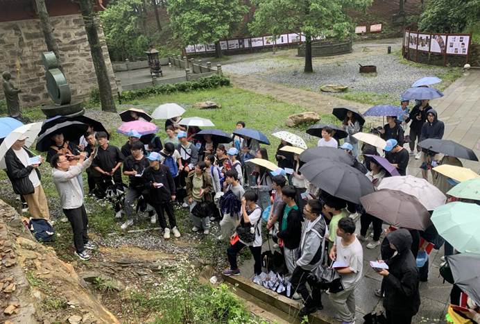 参观庐山会议旧址、庐山博物馆(毛泽东同志旧居)、毛泽东庐山诗词苑,将思想政治教育贯穿于野外实习全过程,坚定学生理想信念,厚植学生爱国情怀,引导学生在探索自然的实践中树立个人正确的国家观、民族观、人生观和价值观。