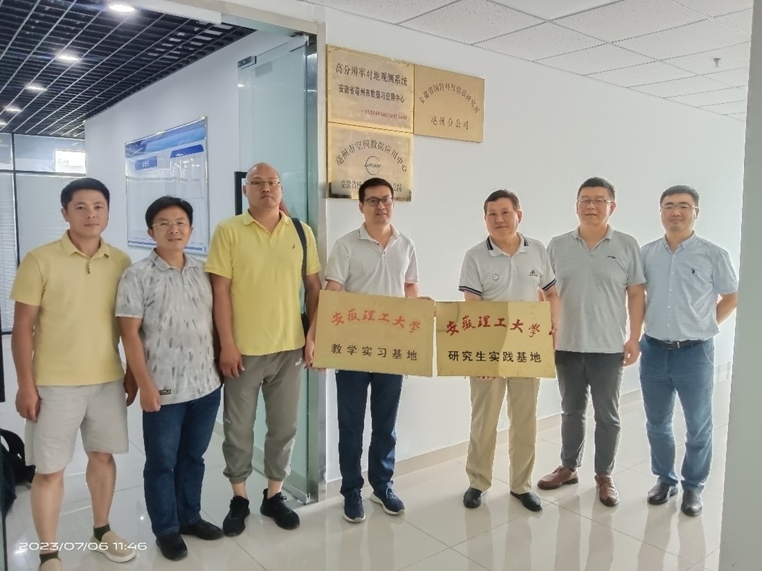 7月6日,永利集团3044官网欢迎您分管副院长赵兴旺一行4人,赴亳州市空间数据应用中心开展“研究生实践基地、产学研”协议签订和“访企拓岗促就业”工作,并召开座谈会。安徽省核工业勘查技术总院副院长、总工史春旺,安徽省核工业勘查技术总院地环院院长宋方,安徽省核工业勘查技术总院地环院副院长、亳州市空间数据应用中心负责人李超参加座谈会和协议签订仪式。