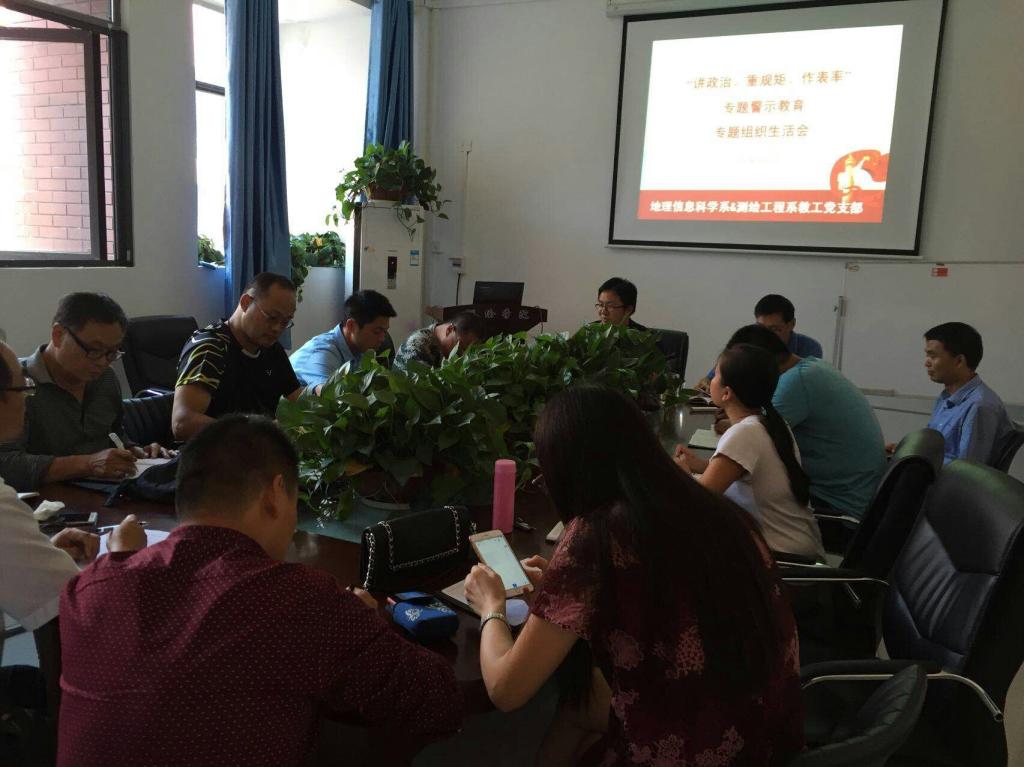 9月15日下午,测绘学院地理信息科学系和测绘工程系教工党支部在南404会议室联合召开“讲重作”专题警示教育专题组织生活会。学院党委书记吴军和学院行政副院长姚嗣宏参加了组织生活会。