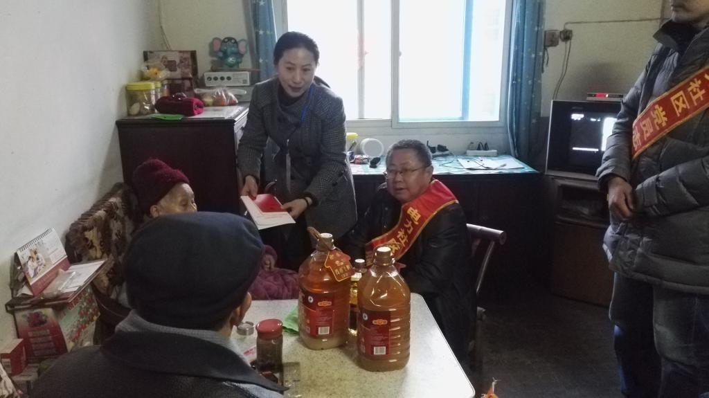 吴军一行带着油、米等生活必需品来到电力社区服务中心,在社区服务人员的带领下,开展社区志愿服务活动.志愿者们按照事先的活动安排,共分为三个志愿服务组,在吴军、赵志根等的组织下,对社区的贫困户、孤寡老人进行慰问,在这寒冬季节,将温暖送进困难群众家中。