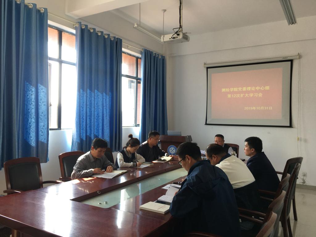 10月31日下午,测绘学院在求本楼南511会议室召开院党委理论中心组扩大学习会。会议由党委书记吴军主持,院党委理论中心组成员、系主任、支部书记参加了学习会。