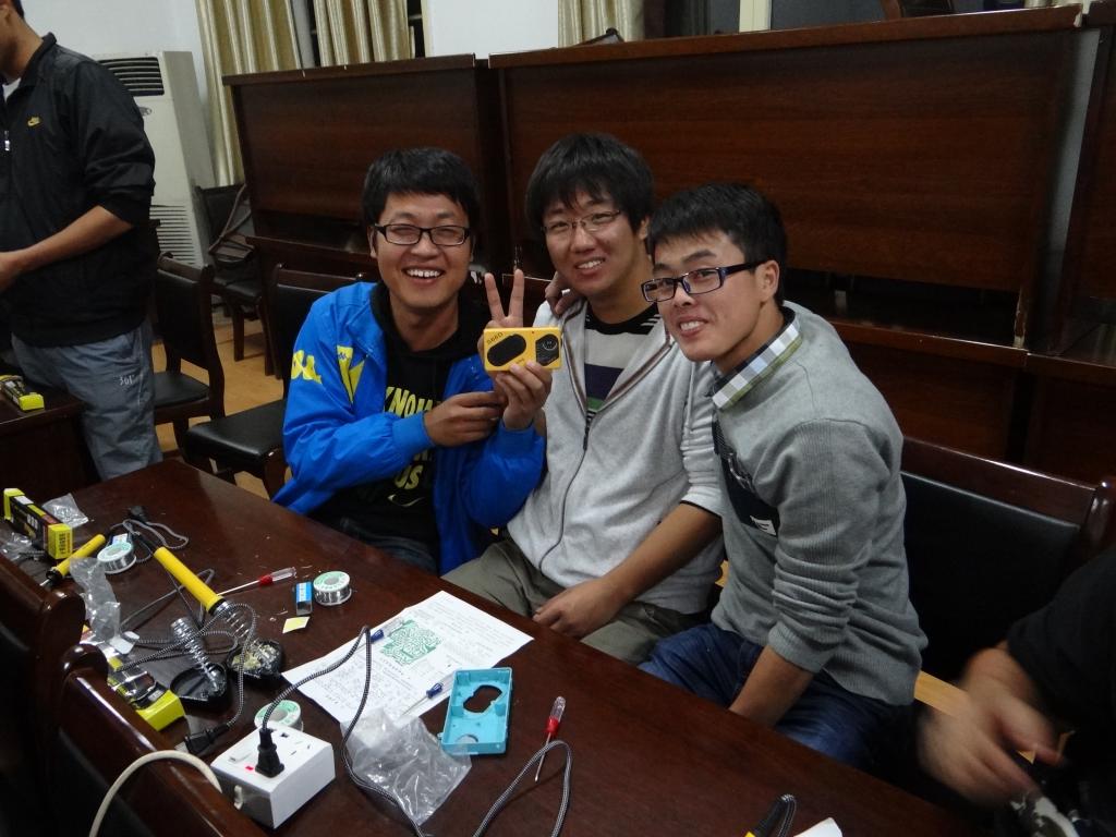 本次大赛主要是通过让学生们自己亲手焊接一台收音机,对他们前期进行的技术培训做一次考核。在主持人对比赛注意事项及要求作了简单介绍后,四所高校学生代表们便展开了角逐,开始了自己的收音机制作。比赛过程中学生们或蹙眉思索,或认真分析仪器,或动手试验,在同学们的紧张操作中,三个小时很快过去。不少成功制作出收音机的学生们纷纷上交自己劳动成果。测绘学院学生收音机制作成功率近50%,成绩良好。