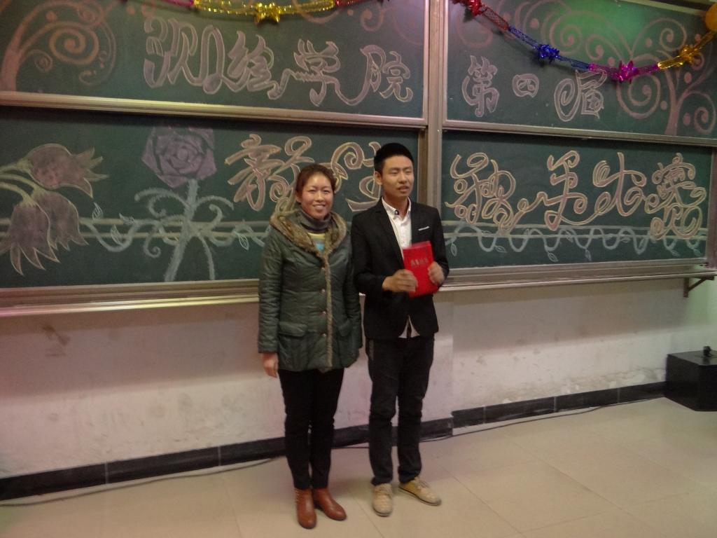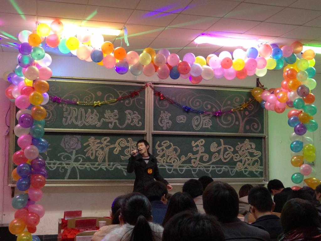 夜色拉下了帷幕,在霓虹灯斑斓的光芒中首先进行的是选手与搭档的双人合唱,精彩的歌曲一首接着一首,有的低沉,有的婉转,有的高昂,有的动感,现场经久不断的是观众的掌声和呐喊。一段精彩的表演之后,选手们又献上了一曲笛声合奏---《菊花台》,令人回味无穷。紧接着开始的是单人冠军赛,所有晋级的选手用最后一首歌,争夺冠军之位,胜败在此一举。选手们全力以赴,每一首歌曲都动人心弦。澎湃的激情,四射的活力,是对他们对青春最完美的诠释。进过一番激烈的角逐,最后王哲同学以优美的歌声征服全场,蟾宫折桂。比赛尾声,所有选手上台共同演唱《相亲相爱》,真挚而感人,团委书记袁彦老师对选手们的表现表示肯定,用温馨和甜蜜的话语为这场动人的比赛画下了完美的句号。