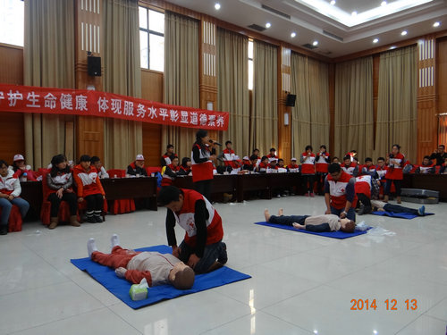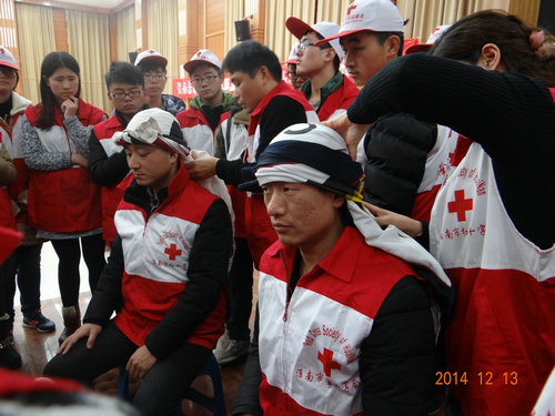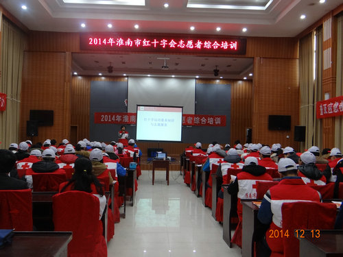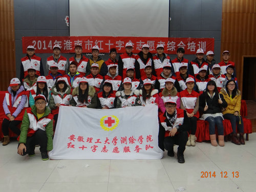 12月13日,由淮南市红十字会主办的“2014年淮南市红十字会志愿者综合培训”在淮南市体育馆举办。测绘学院红十字会志愿者团队近40名成员参加了此次培训活动。淮南市红十字会的领导和救护专家莅临现场指导,淮南市电视台进行了现场采访报道。