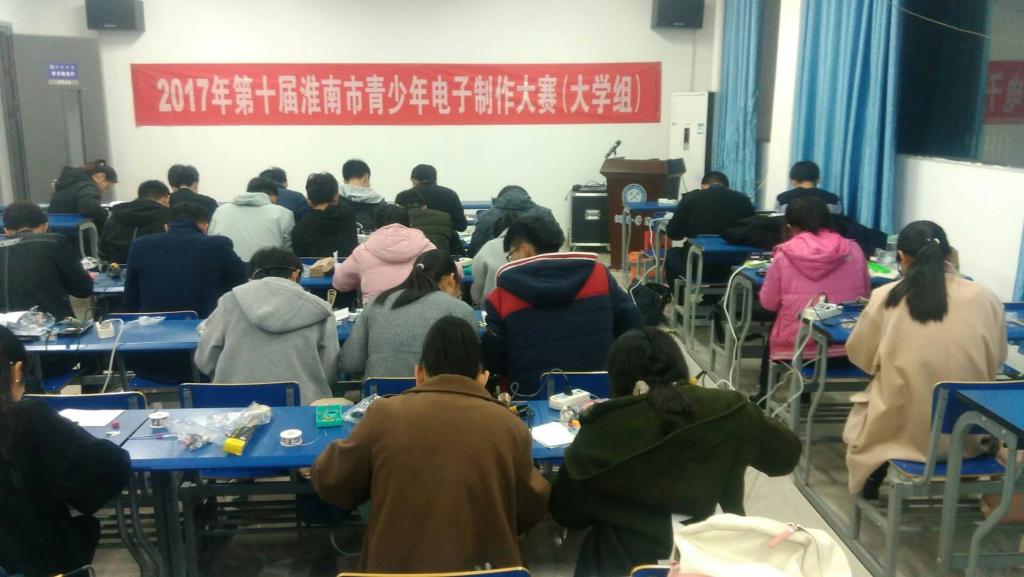 2017年11月26日,淮南市青少年电子制作大赛(大学组)于龙湖中学成功举办。本次大赛由田家庵区科学技术协会主席胡斌主持,在淮5所高校100余名选手参加了比赛。